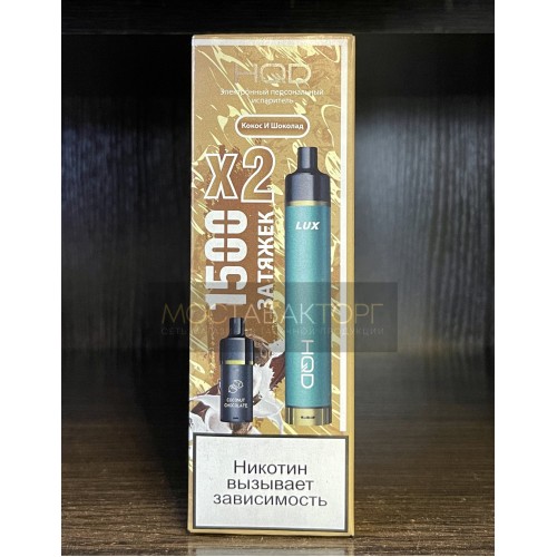 Электронная сигарета HQD LUX в комплекте с 2 картриджами со вкусом Кокос Шоколад на 1500 затяжек.