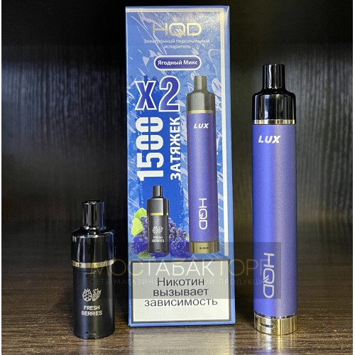 Электронная сигарета HQD LUX в комплекте с 2 картриджами со вкусом Ягодный Микс на 1500 затяжек.
