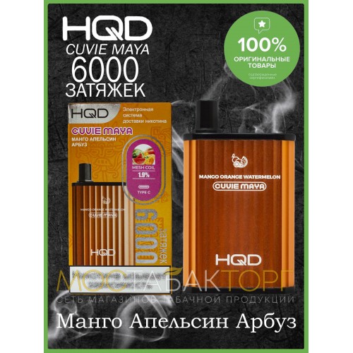 Купить одноразовую электронную сигарету HQD Cuvie MAYA Mango Orange Watermelon (hqd Куви Мая Манго Апельсин Арбуз) в Москве вы можете в сети наших розничных магазинов или оформив заказ на нашем сайте