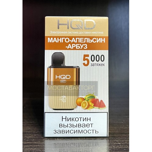 Купить одноразовую электронную сигарету HQD HOT Mango Orange Watermelon (hqd Хот Манго Апельсин Арбуз) в Москве вы можете в сети наших розничных магазинов или оформив заказ на нашем сайте