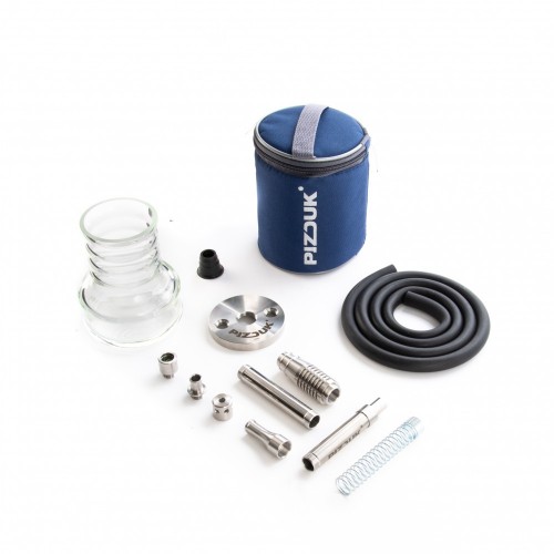 Кальян Pizduk Hookah новинка в сегменте мини кальянов. Кальяны Pizduk производятся в России. Колба выполнена из закалённого стекла, шахта сделана из нержавеющей стали и имеет высоту около 12 см. В комплекте также идёт мундштук из нержавеющей стали и шланг. Кальян Pizduk поставляется в удобной компактной сумке в которую помещается кальян в разобранном виде и его удобно взять куда угодно.