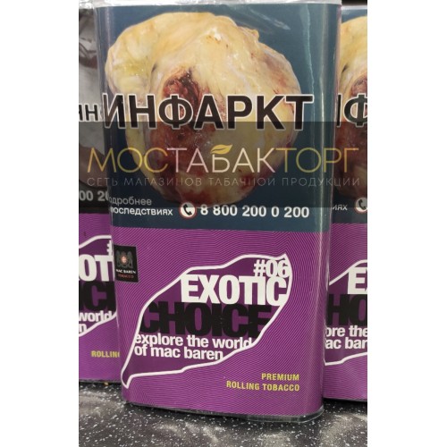 Mac Baren Exotic Choice (Мак Барен Экзотические Фрукты) табак сигаретный с насыщенным и сладковатым ароматом. Табачная смесь состоит из Вирджинии и Берлей. Тонкая нарезка табака способствует легкому «забитию» сигарет и мягкому курению. Табак средней крепости.